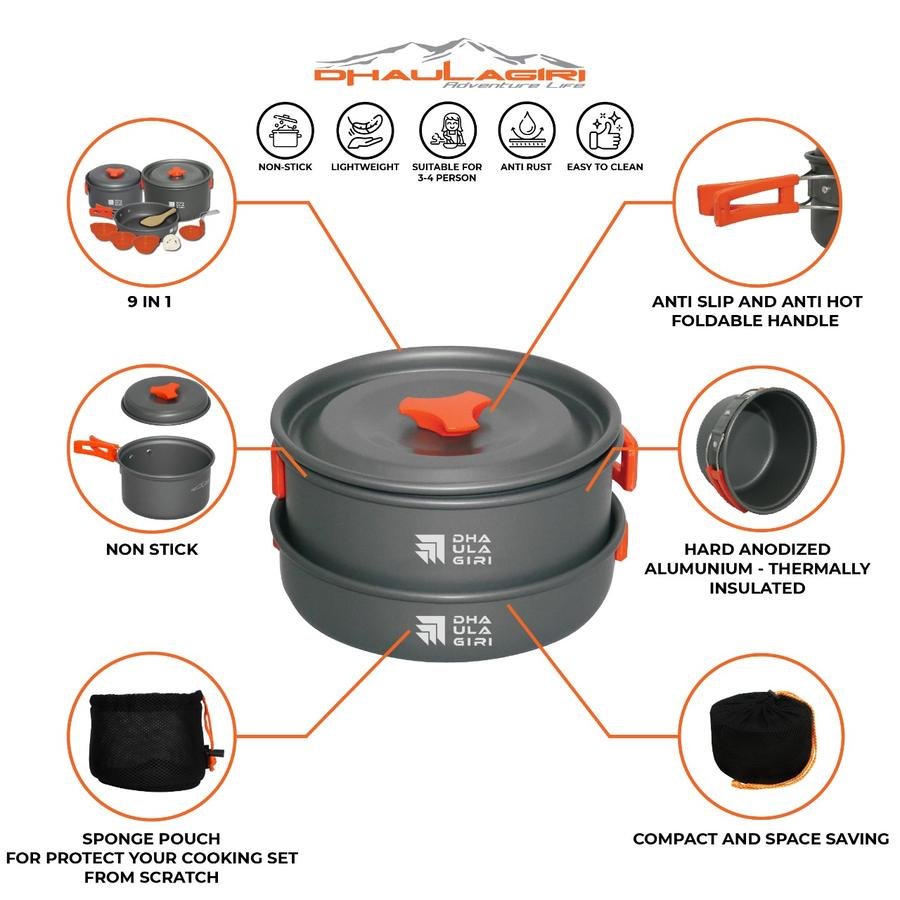 Cooking set dari Dhaulagiri sudah ready kembali nih sob! Seri DH 300 cocok banget buat pengunaan 2-3 orang lo sob. Dalam satu set sudah lengkap dengan alat masak dan berbagai jenis panci. Dilengkapi juga dengan pouch yang empuk sehingga selain jadi wadah penyimpanan juga dapat melindungi dari dari benturan Materialnya hard anodized dan non-stick lo sob! Bener-bener satu set alat masak yang komplit dan praktis banget ya sob!