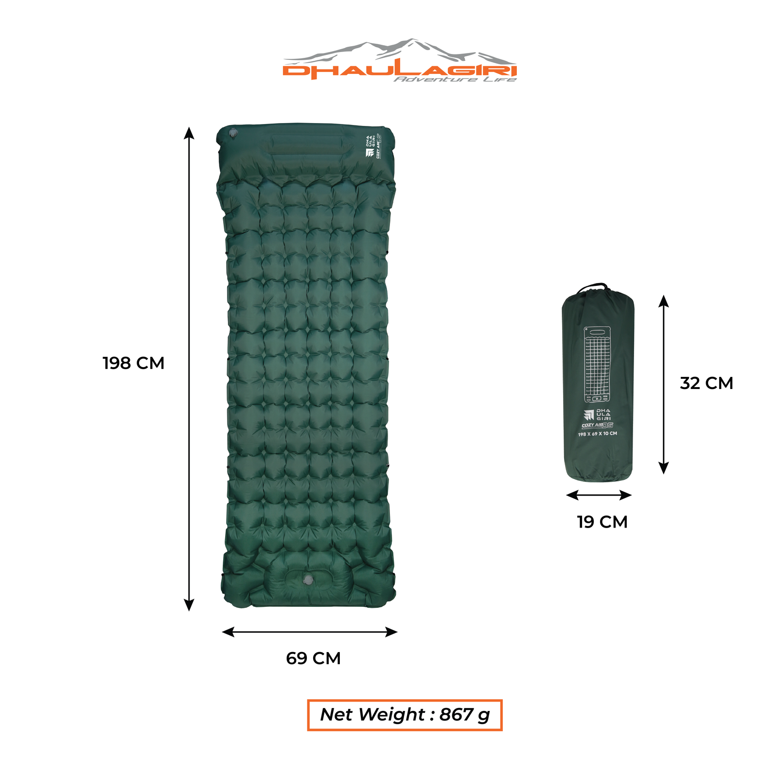 Matras angin dari Dhaulagiri ini menawarkan kenyamanan tidur maksimal saat di alam dan mudah digunakan maupun dibawa ke mana saja. Memiliki fitur-fitur yang sama seperti Sleeping Pad Cozy Air 03, Cozy Air 05 ini juga dapat diisi angin dengan 3 cara berbeda, yaitu dengan di tiup secara manual, menggunakan mesin pompa angin dan dengan diinjak menggunakan kaki pada bagian spons di area lubang anginnya. Proses inflasi dan deflasi yang cepat membuatnya praktis untuk berbagai kebutuhan, baik untuk camping, berlibur, atau penggunaan di rumah sebagai tempat tidur tambahan. Yang membedakan dari cozy air 03 hanya dari segi dimensinya saja Sob,, cozy air 05 ini memiliki dimensi ukuran dan ketebalan yang lebih besar dan juga memiliki bentuk pola yang berbeda dari cozy 03. Sehingga sangat direkomendasikan untuk Kamu yang butuh kenyamanan extra atau Kamu yang memiliki ukuran tubuh besar. Miliki sekarang juga Sleeping Pad Cozy Air 05 dari Dhaulagiri dan rasakan kenyamanan tidur di alam yang maksimal.