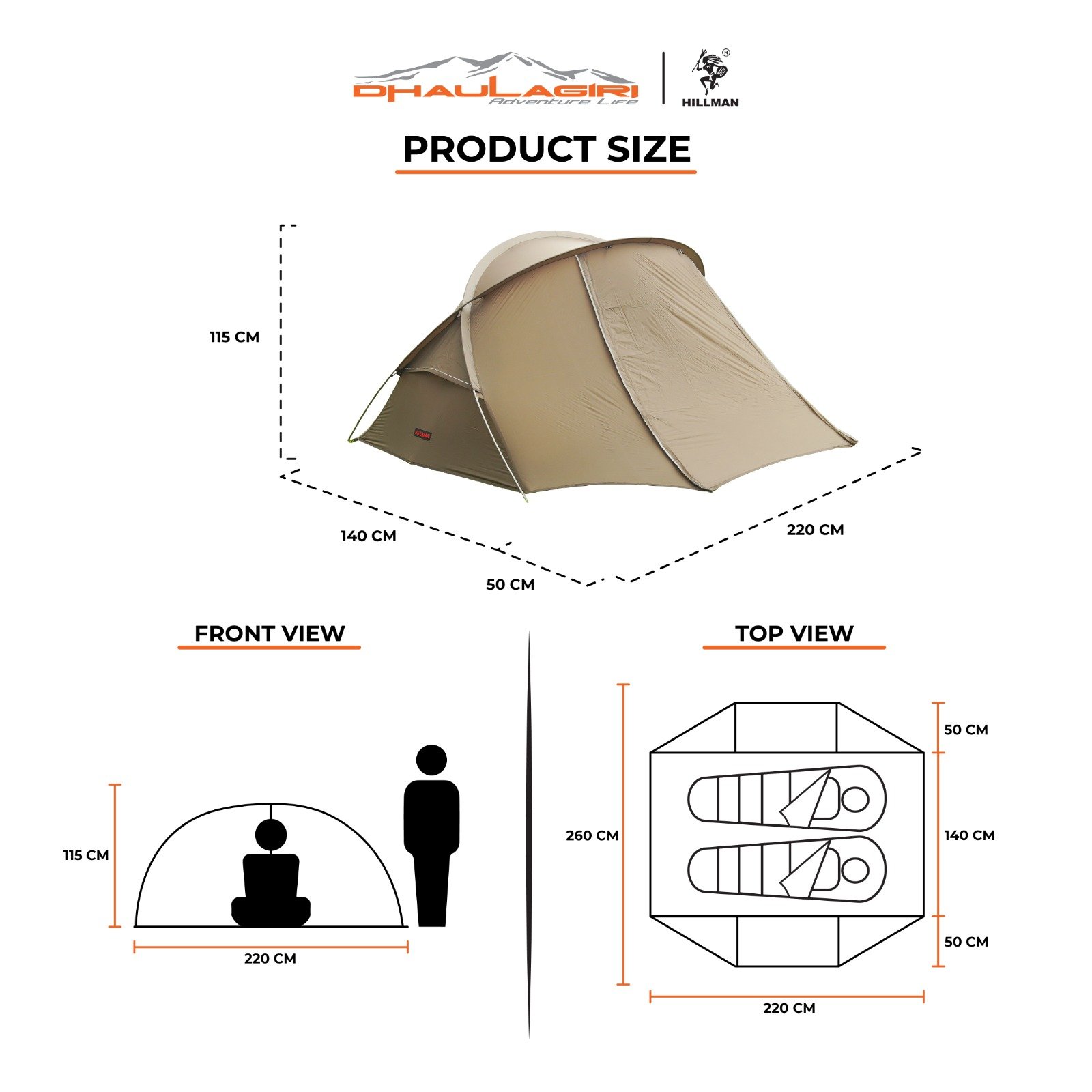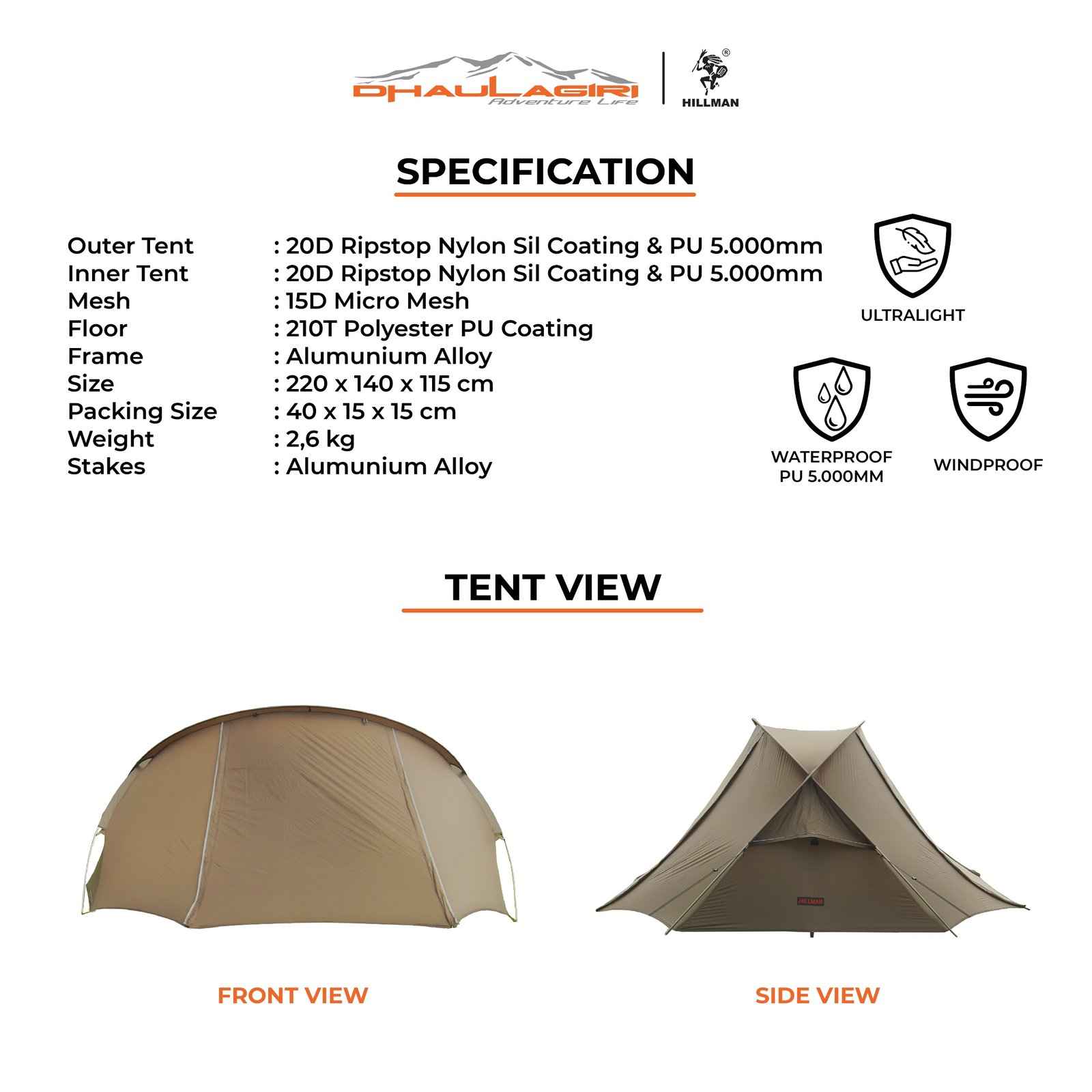 Naik gunung jadi makin nyaman dengan tenda Hillman berkapasitas 2 orang. Beratnya hanya 1.9 kg, ringan dibawa tanpa membebani carrier. 💼