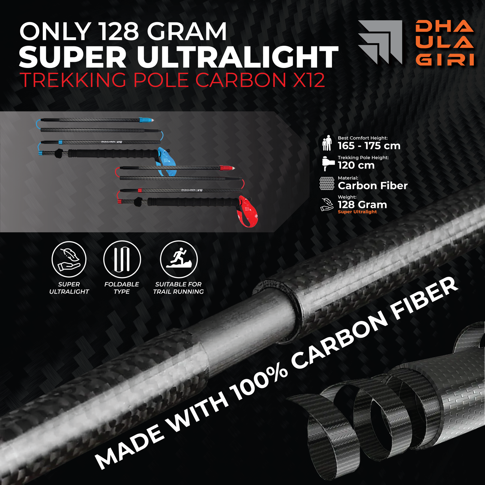 TREKKING POLE ULTRALIGHT CARBON X12TREKKING POLE ULTRALIGHT CARBON X12